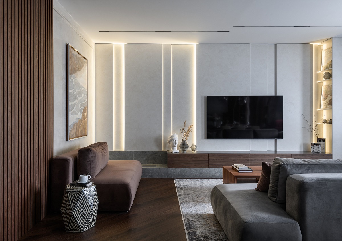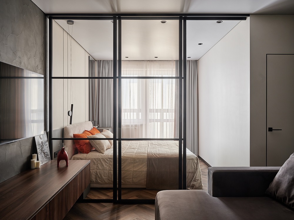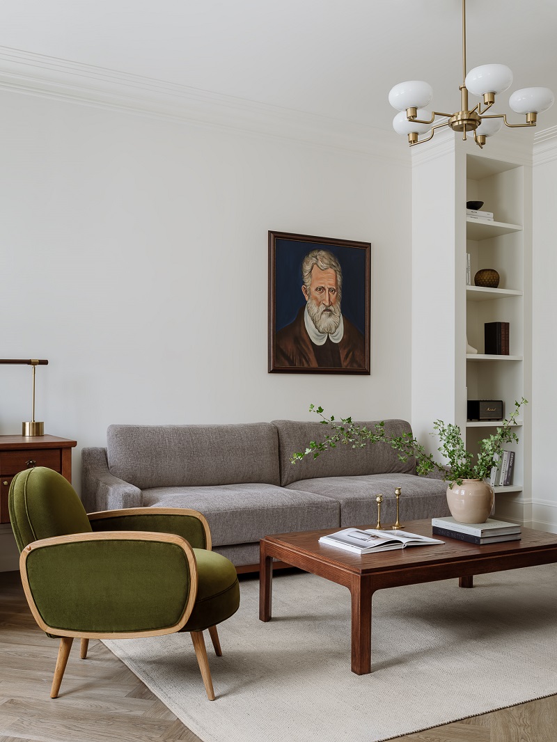 Дизайнер оставляет простор для творчества, здесь есть «воздух» для дополнительного декора, например, подушек на диван, растений или вазы с цветами. Такие интерьеры особенно хороши для тех, кто любит создавать разное настроение у себя дома в зависимости от сезона или просто от настроения.